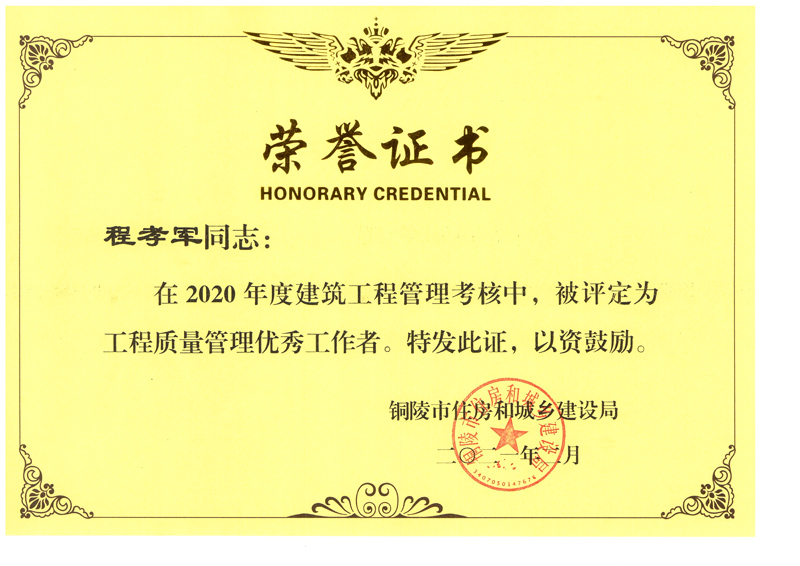 銅陵市2020年度優(yōu)秀建造師(程宏雨)