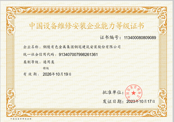 • 中國設(shè)備維修安裝企業(yè)能力等級證書