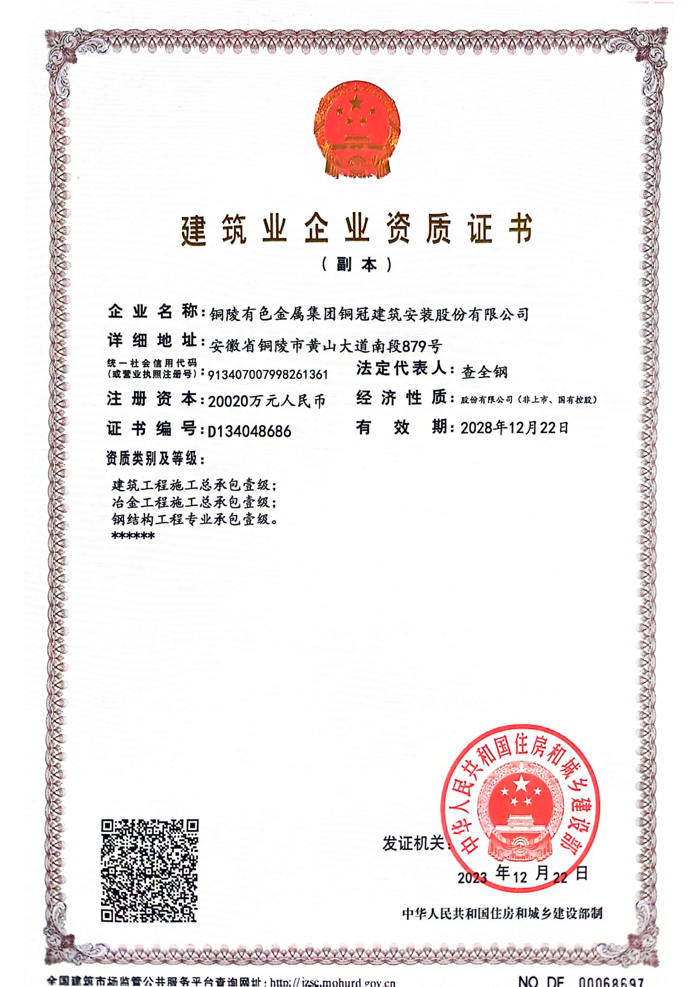 • 有色金屬工業(yè)建設(shè)工程質(zhì)量檢測機(jī)構(gòu)資質(zhì)證書